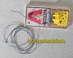 TIP: Be sure to tie a length of strong fish line or wire to the trap. Otherwise an injured rodent could drag the trap into a spot you can’t access, only to die there, and … well, leave an unpleasant odor reminding you that it’s still there. Anchor the end of the wire to something. I wrapped it around an adjustment bolt on the slide roller. I tied a heavy putty knife to another one. And the one on the kitchen counter, tied to the kitchen faucet.